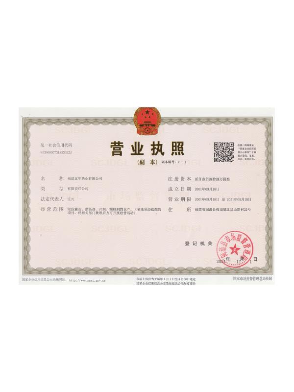 福建延年藥業(yè)有限公司位于福州市閩清縣城關(guān),工廠(chǎng)坐落在風(fēng)景秀美的梅城森林公園山腳下,公司前身是中國(guó)人民解放軍第9747工廠(chǎng),創(chuàng)辦于1970年9月,隸屬南京軍區(qū)總后勤部,企業(yè)的地方名稱(chēng)為福建閩清制藥廠(chǎng)。1998年6月為貫徹中央關(guān)于軍隊(duì)不再?gòu)氖陆?jīng)商活動(dòng)的決議,企業(yè)軍轉(zhuǎn)地改制移交地方,2001年9月企業(yè)改制,更名為福建延年藥業(yè)有限公司。